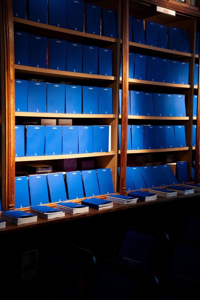 This display interacts directly with the commemorative edition of ‘Invisible Cities’, launched as part of the celebrations of the 120th anniversary of Livraria Lello Porto in partnership with Dom Quixote, and with the blue installation that covers the interior shelves. Exterior and interior form a single curatorial gesture, where design, architecture and literature come together in the same narrative.